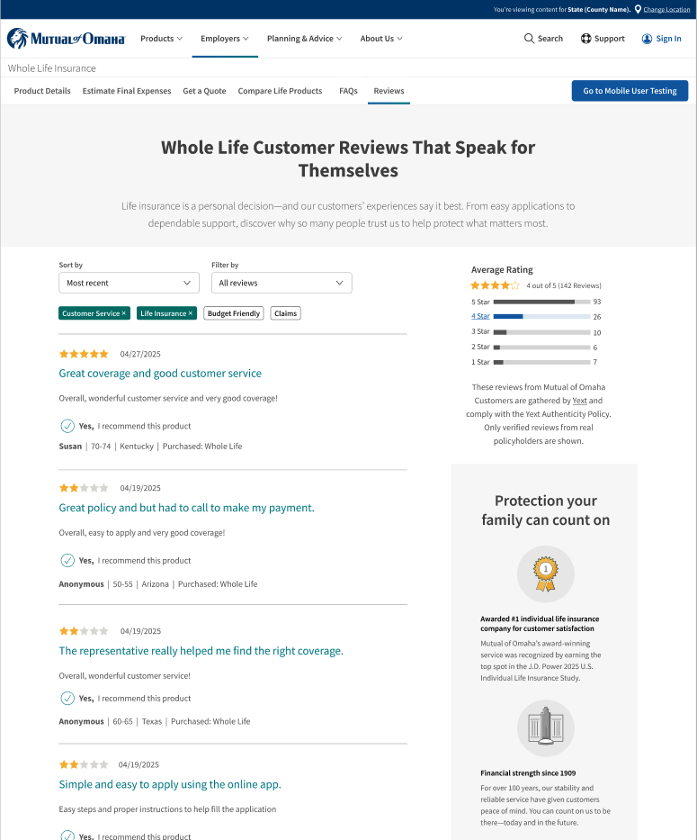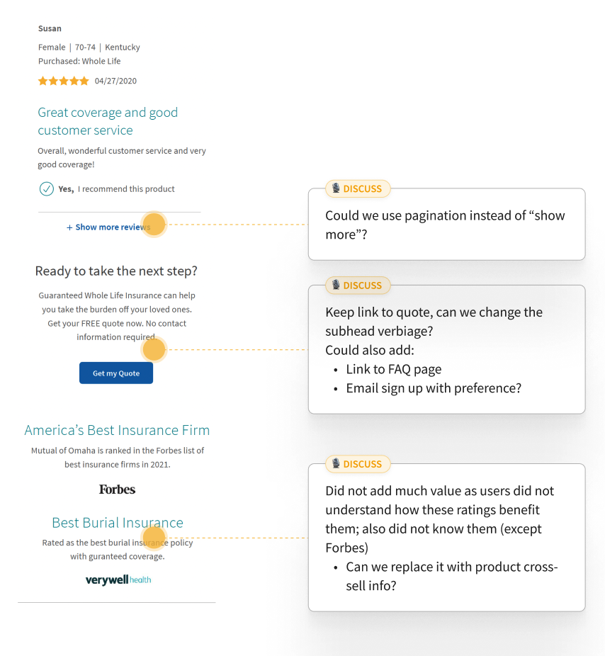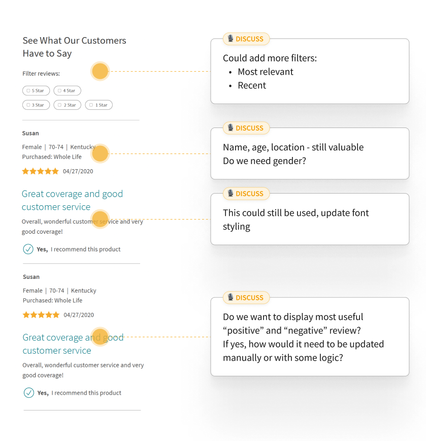- Users appreciated the qualitative reviews. The demographic information of the reviewer was indicated to be nice to have but not important, except “state” as policy regulations differ from state to state.