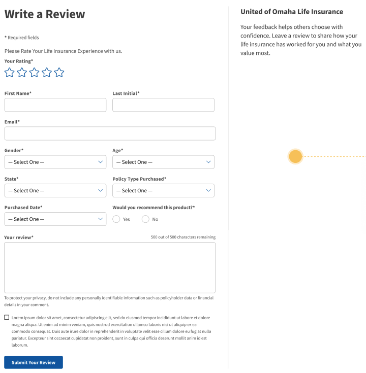 Goal: Create and plan a strategy to repurpose the reviews section on Moo.com for Life Products so we can build a user journey that feeds into the purchase funnel.